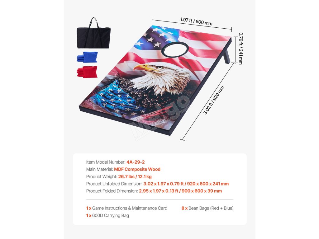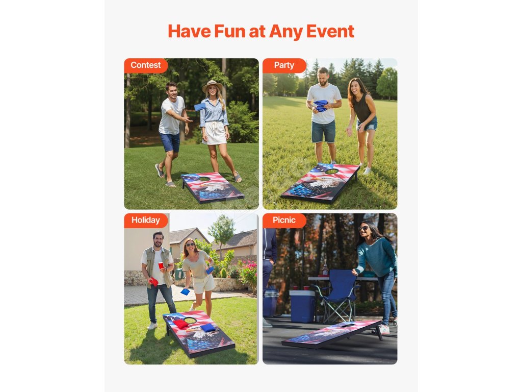 Skladacia konštrukcia umožňuje jednoduché nastavenie alebo zloženie na uskladnenie. Hracia doska na kukuričné diery sa dodáva s taškou 420D na pohodlné skladovanie, ktorá pomáha šetriť miesto.