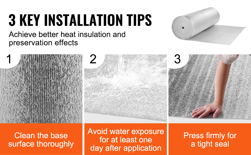 Ak chcete maximalizovať účinnosť tepelnej izolácie, zohľadnite tieto 3 tipy na inštaláciu: udržiavajte čistý a suchý podkladový povrch, po inštalácii nechajte aspoň jeden deň bez pôsobenia vody a pevne pritlačte, aby ste dosiahli tesné utesnenie a optimálny izolačný výkon.