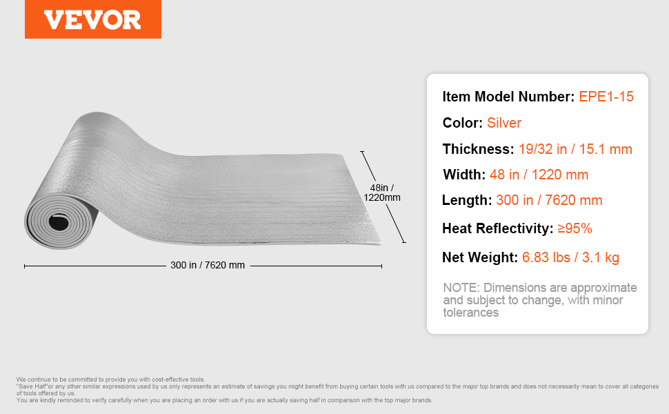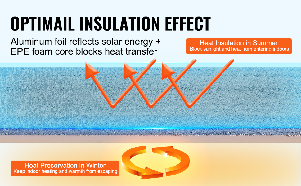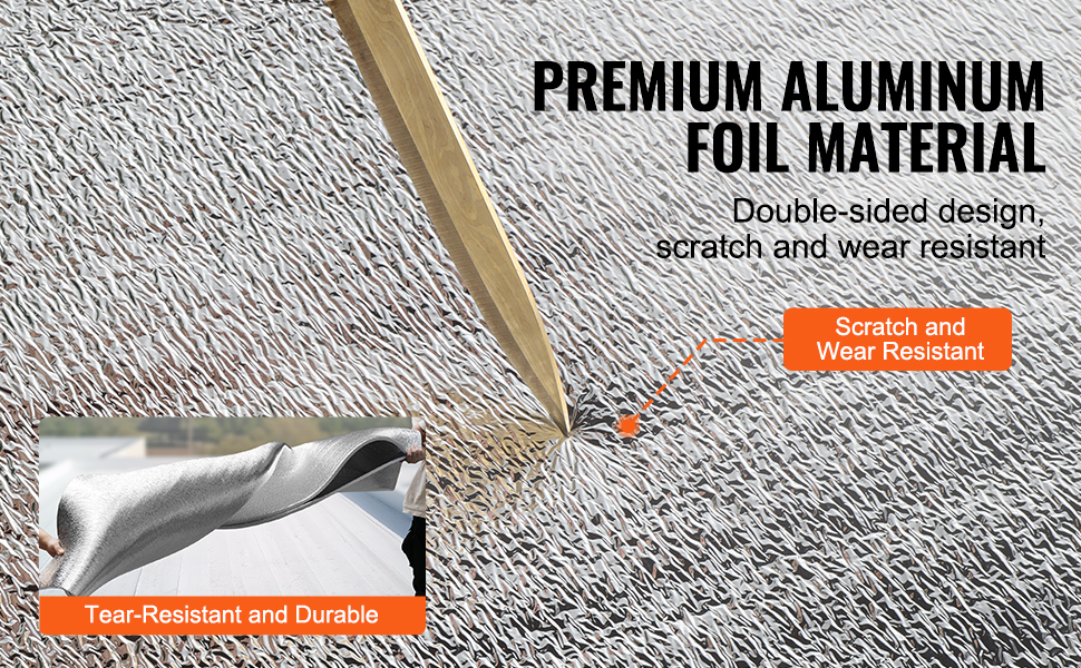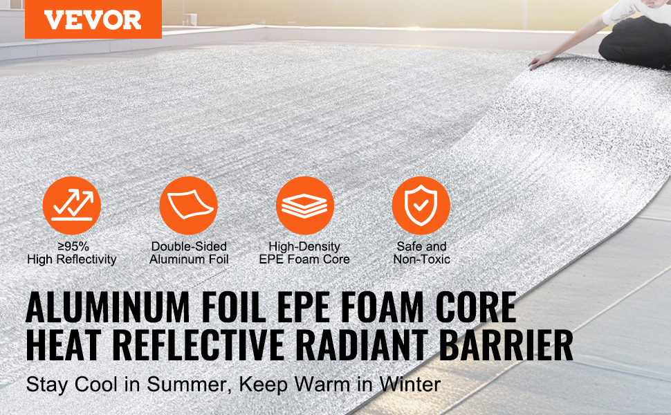 Dvojitá reflexná izolačná rolka VEVOR sa vyznačuje ≥ 95 % vysokou odrazivosťou, pričom využíva dvojitú reflexnú hliníkovú fóliu a penové jadro EPE s vysokou hustotou. V lete účinne blokuje slnečné žiarenie a v zime zabraňuje stratám tepla v interiéri, čím udržiava príjemnú teplotu v interiéri.