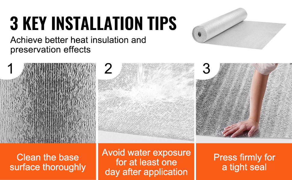 Ak chcete maximalizovať účinnosť tepelnej izolácie, zohľadnite tieto 3 tipy na inštaláciu: udržiavajte čistý a suchý podkladový povrch, po inštalácii nechajte aspoň jeden deň bez pôsobenia vody a pevne pritlačte, aby ste dosiahli tesné utesnenie a optimálny izolačný výkon.