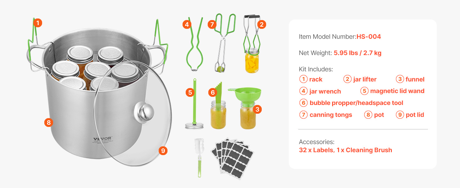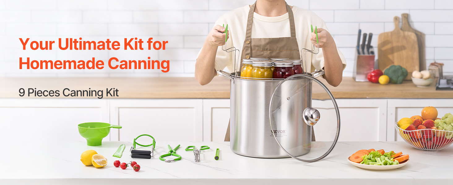 Naša štartovacia súprava konzervárenských potrieb obsahuje kompletné základné nástroje, ako je kľúč na zaváraninové poháre, zdvihák na poháre a ďalšie praktické predmety, ktoré uspokoja všetky vaše domáce potreby pri konzervovaní. Štartovacia súprava je ideálna pre začiatočníkov aj skúsených domácich kuchárov.