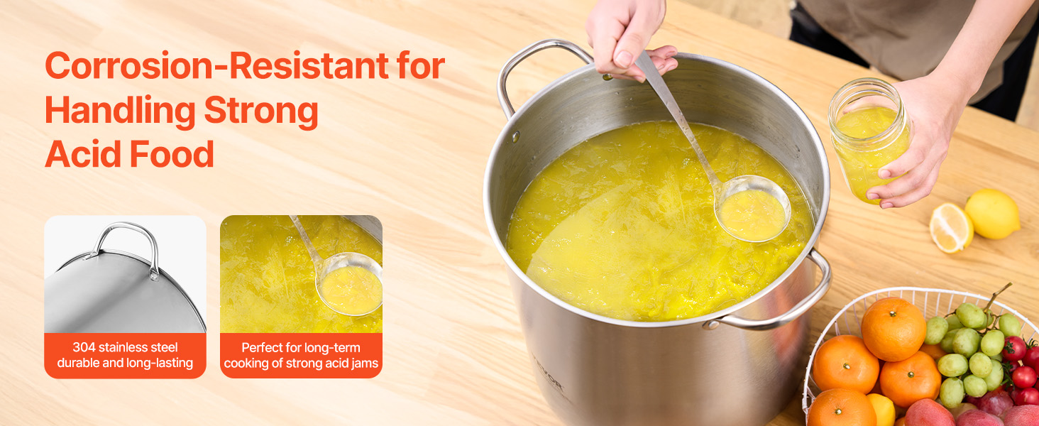 Táto súprava potrieb na konzervovanie je vyrobená tak, aby vydržala, je odolná a odolná voči deformácii alebo poškodeniu aj po dlhodobom používaní. Je skvelá nielen na výrobu džemov, ale možno ju použiť aj na dusenie a iné spôsoby varenia.
