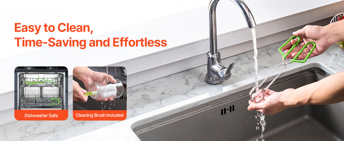 Táto súprava na konzervovanie sa ľahko čistí a udržiava a pomáha predchádzať korózii alebo poškodeniu spôsobenému škvrnami od potravín a nečistotami. Je ľahké udržiavať vaše potreby na konzervovanie vždy čisté.
