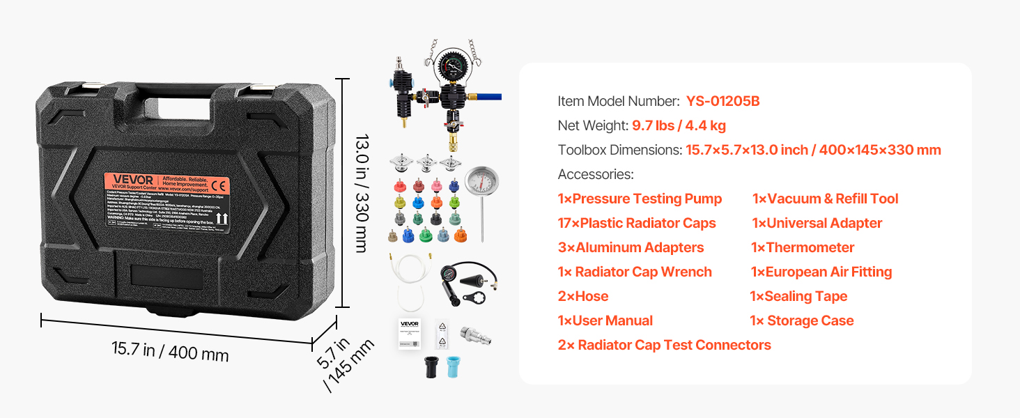 Súprava na testovanie tlaku chladiacej kvapaliny na všestranné použitie