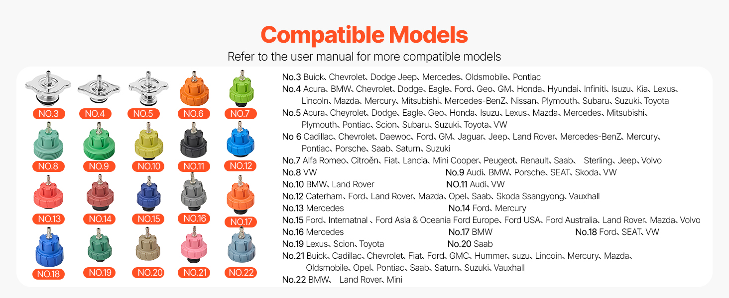 Naša súprava na testovanie tlaku chladiča obsahuje viacero veľkostí adaptérov, ktoré bezpečne pasujú na otvory chladičov rôznych vozidiel. Zvyšuje tesniaci výkon a zabraňuje únikom počas vákuových alebo tlakových operácií.