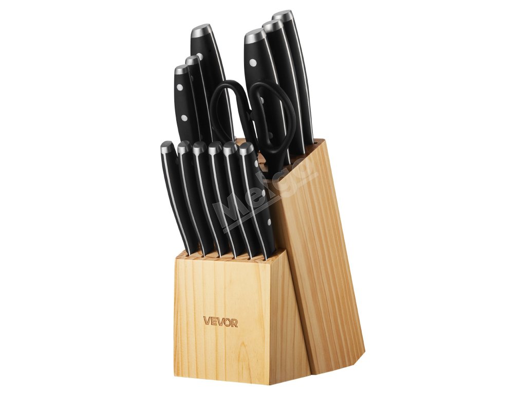 Sada kuchynských nožov 15-dielna, uhlíková nerez, brúsny prút, blok
