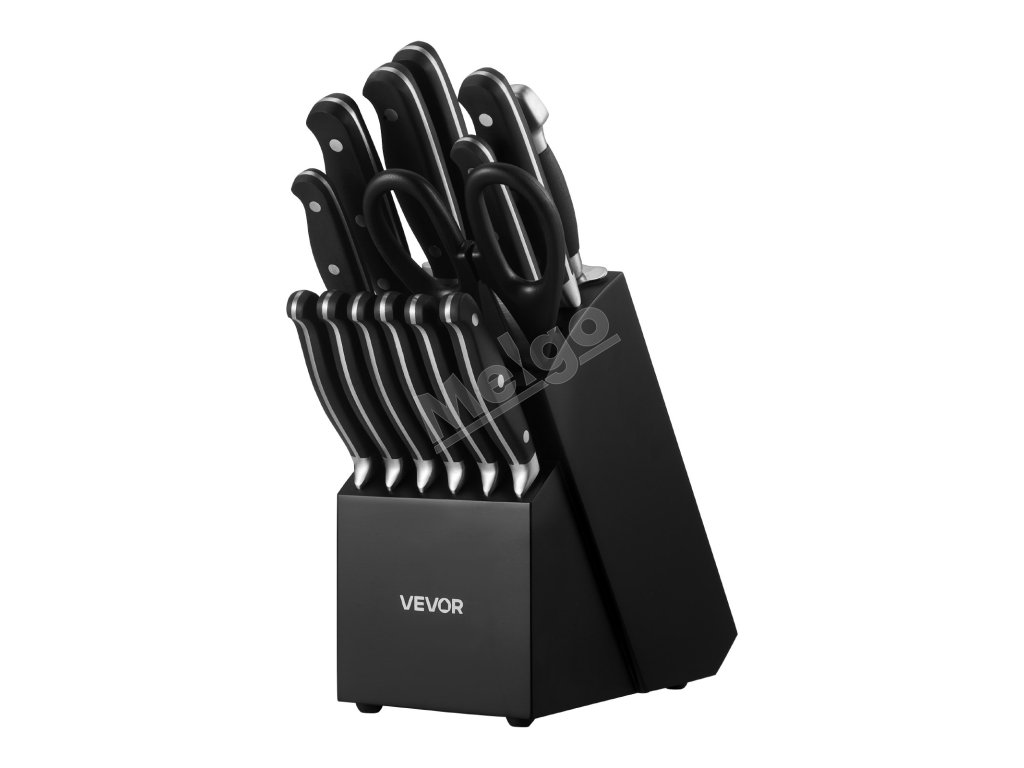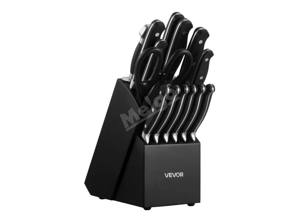 Sada kuchynských nožov 15-dielna, vysokouhlíková nerez, drevený blok
