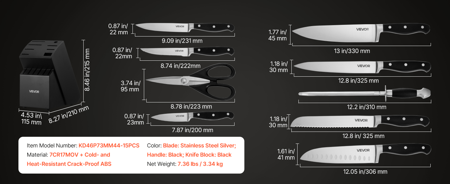 | Materiál | 7CR17MOV + ABS odolný proti praskaniu za studena a tepla |