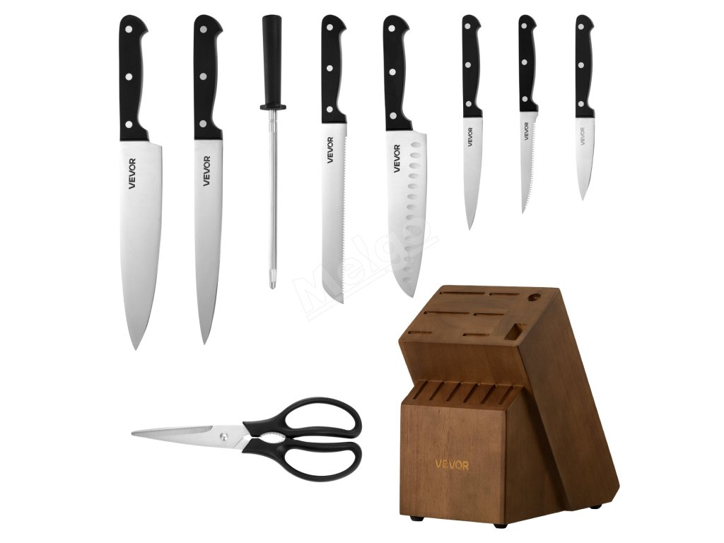 Sada kuchynských nožov 15 ks, uhlíková nerezová oceľ, blok a ocieľka