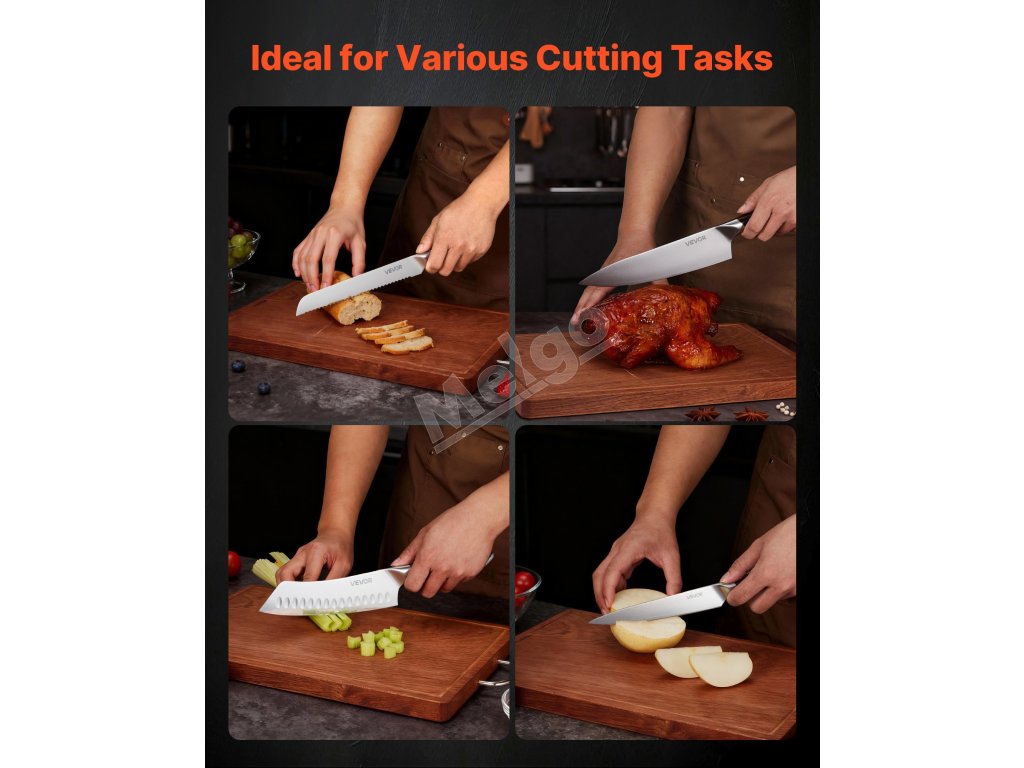 Táto súprava nožov z nehrdzavejúcej ocele v sebe spája eleganciu a praktickosť a obohatí vašu kuchyňu o moderný, rafinovaný nádych. Je to ideálny darček na Valentína, Vianoce, svadby a narodeniny - nezabudnuteľné prekvapenie pre nadšencov varenia.