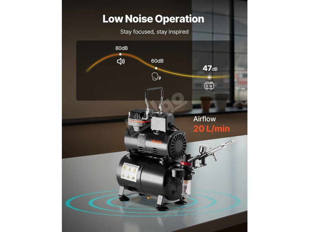 Airbrushová sada s kompresorom 1/6 hp, nádrž, dual-action, 3 trysky