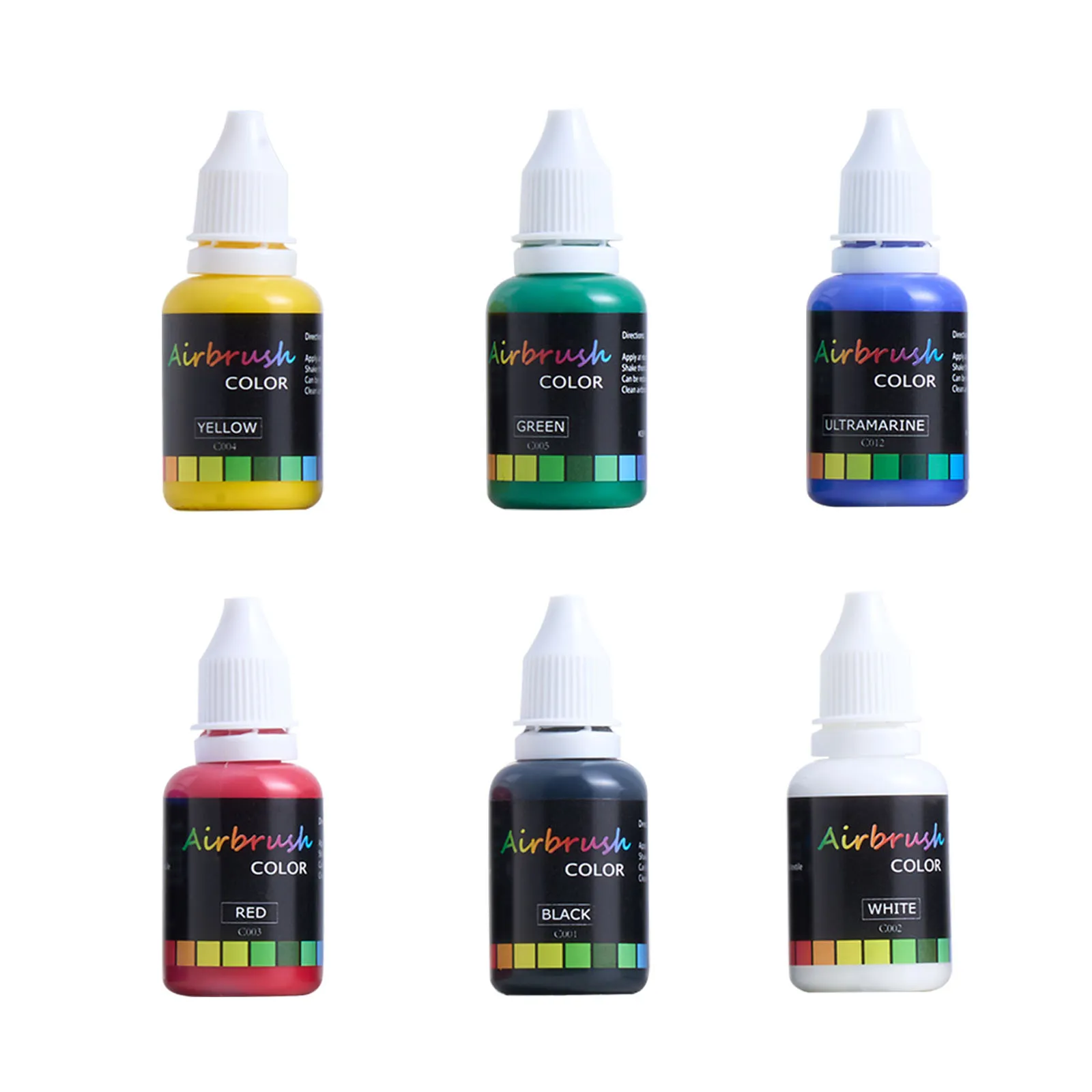 Súprava airbrush s kompresorom obsahuje 6 základných farieb so sýtymi tónmi, ktoré sú ideálne na miešanie farieb a experimentovanie s rôznymi štýlmi.
