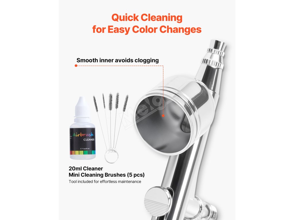 Špeciálny držiak súpravy so vzduchovým štetcom udržiava váš airbrush bezpečne a usporiadane, čím sa vyhnete neporiadnemu nastavovaniu a zaistíte si uprataný pracovný priestor.