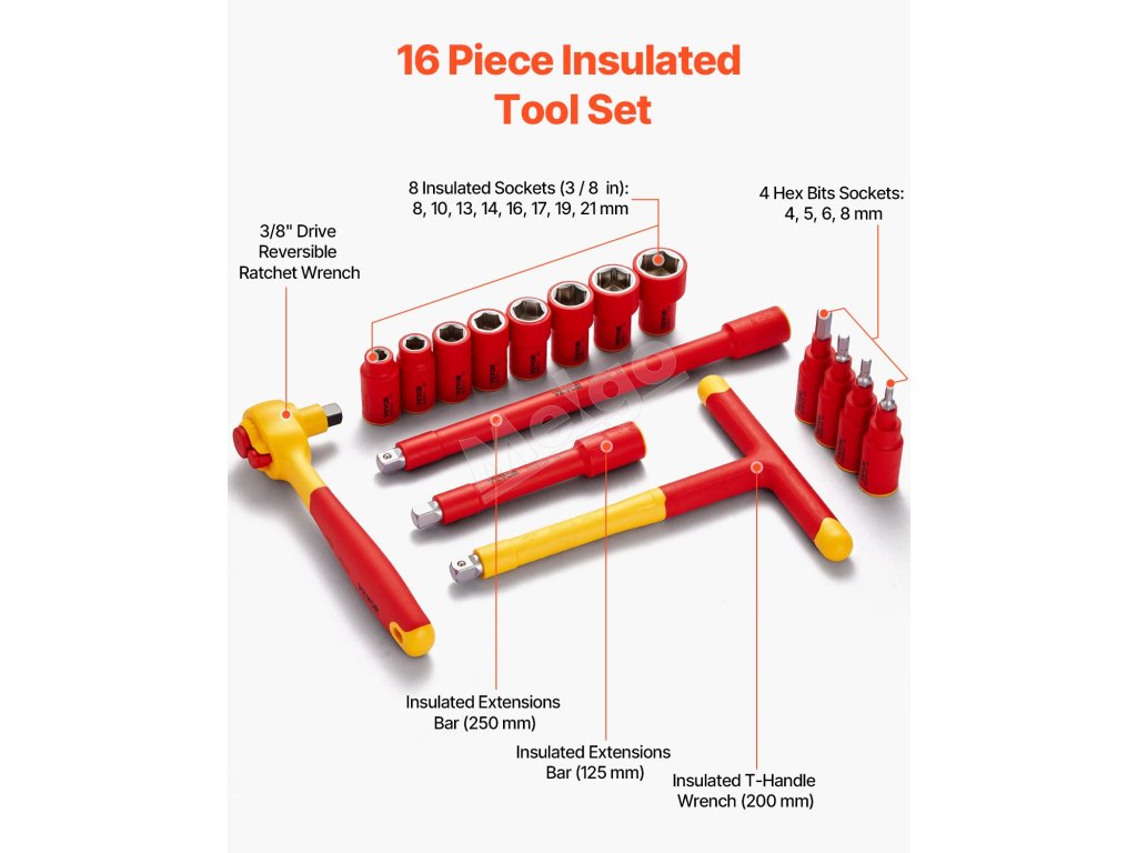 Izolovaná sada nástrčných hlavíc 16 dielov, 1000V, račňa, t-rukoväť