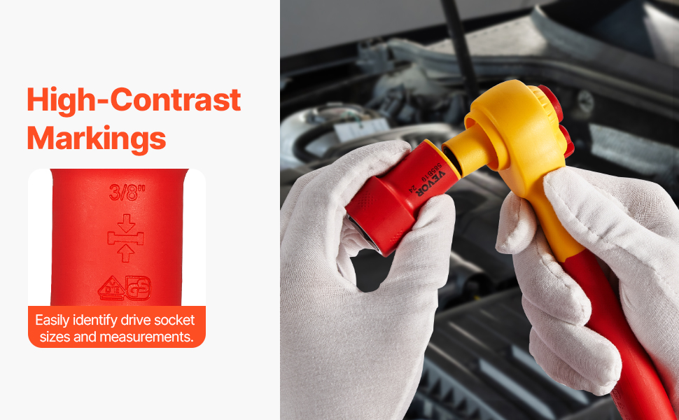 Toto izolované náradie na kľúče vám umožňuje ľahko identifikovať veľkosť nástrčnej hlavice a vykonať presné merania, čo vám pomôže rýchlo nájsť správnu nástrčnú hlavicu. To účinne zvyšuje efektivitu práce a znižuje počet chýb počas práce.