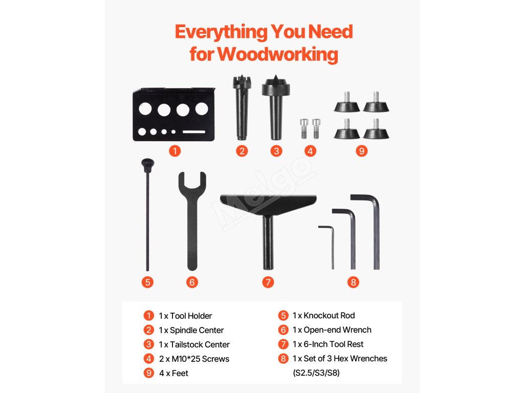 Tento sústruh na obrábanie dreva je vyrobený z odolného liatinového tela, ktoré pevne drží na mieste s minimálnymi vibráciami. Vychutnajte si hladšie rezy a väčšiu presnosť - žiadne chvenie, len výsledky.