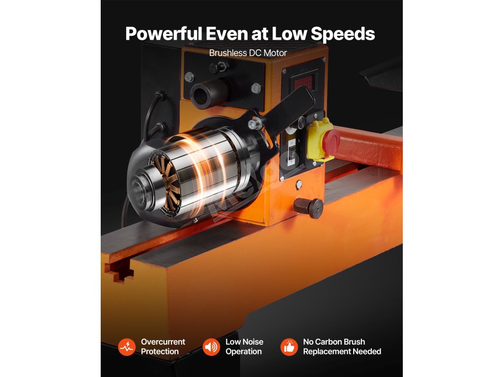 Sústruh na drevo 1100 W / 1.5 HP, 0–3200 RPM, 406×1020 mm, BLDC motor