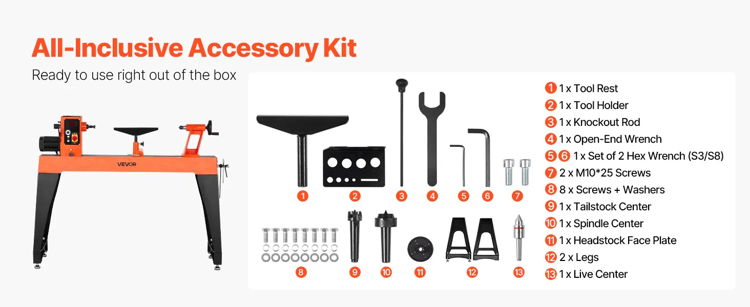Tento sústruh na drevo vyrobený z odolného liatinového tela zostáva pevne na mieste s minimálnymi vibráciami. Vychutnajte si hladšie rezy a väčšiu presnosť - žiadne chvenie, len výsledky.
