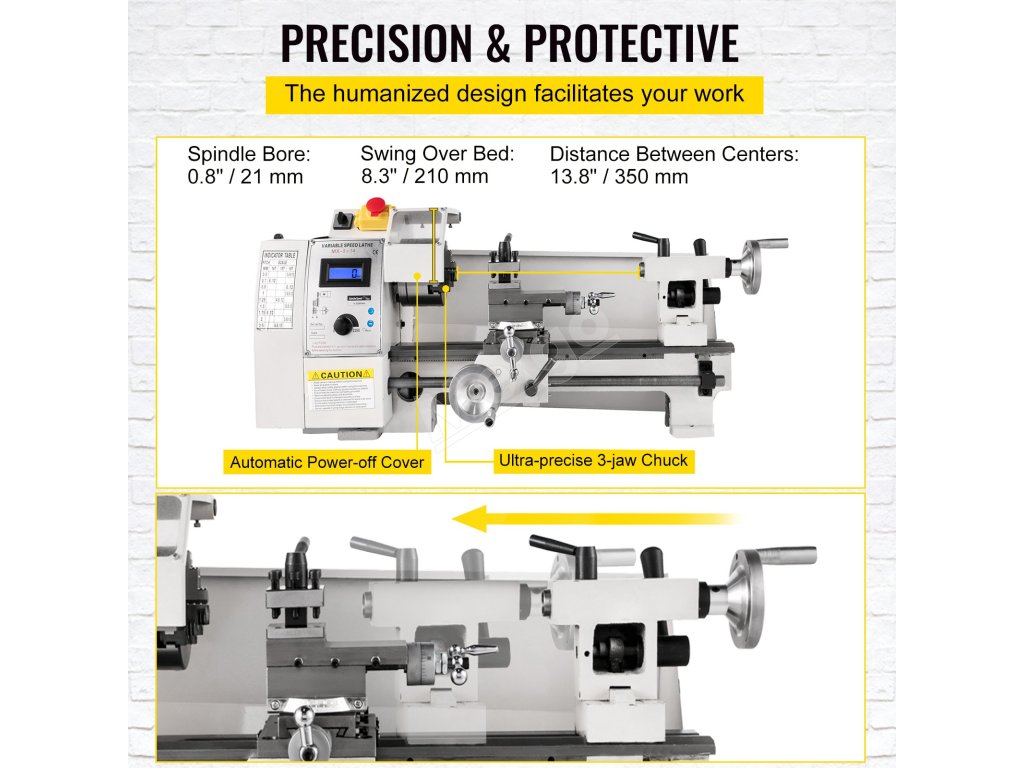 Mini sústruh 8×14, 2250 PRM, 650W, variabilná rýchlosť pre kov