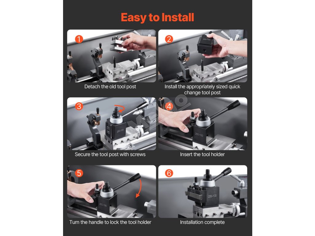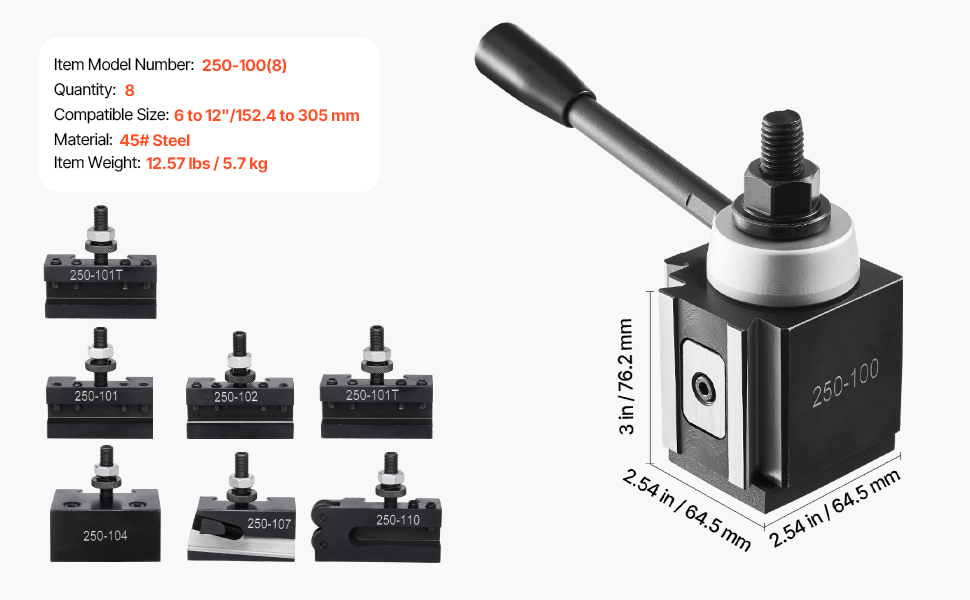 Naša súprava rýchlovýmenných stĺpikov nástrojov je vhodná pre 6 až 12" sústruhy a funguje s rôznymi modelmi. Umožňuje rýchlu výmenu nástrojov pomocou otočenia rukoväte, presné zarovnanie pomocou otočnej skrutky a dlhodobú životnosť vďaka liatinovej konštrukcii. Jednoducho sa inštaluje a je ideálna na modernizáciu vašej dielne.