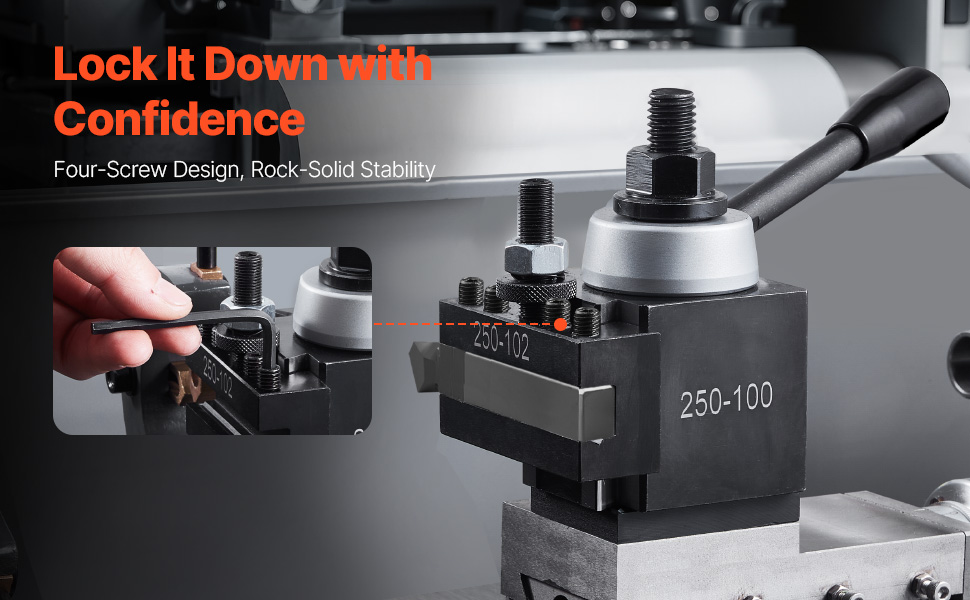 Vďaka štvorbodovému systému skrutiek táto súprava držiaka nástrojov na rýchlu výmenu sústruhu minimalizuje chyby spôsobené vibráciami a zvyšuje presnosť a efektívnosť obrábania, čím poskytuje neochvejnú podporu pre vaše operácie.
