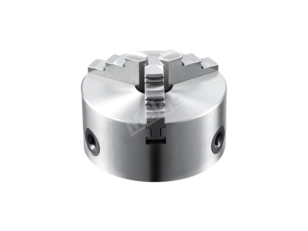 Trojčeľusťové skľučovadlo má funkciu samocentrovania a kužeľový prevod na presnú kontrolu presnosti upnutého obrobku na presné obrábanie. Tolerancia ložiska ≤ 0,05 mm / 0,002" zabezpečuje konštrukčnú stabilitu a vysokú presnosť sústružníckeho skľučovadla.