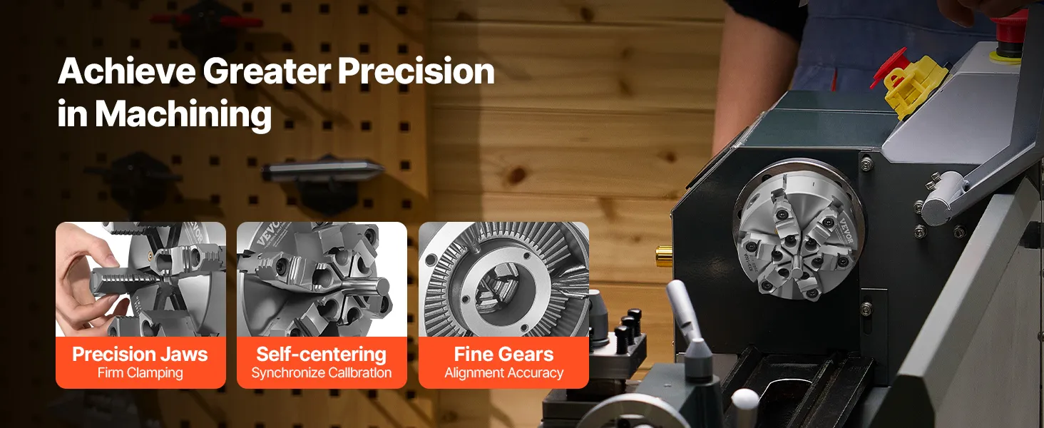 Vďaka funkcii samocentrovania a jemným prevodom zabezpečuje naše sústružnícke skľučovadlo presnú kontrolu nad presnosťou upnutia, takže je ideálne na úlohy presného obrábania.