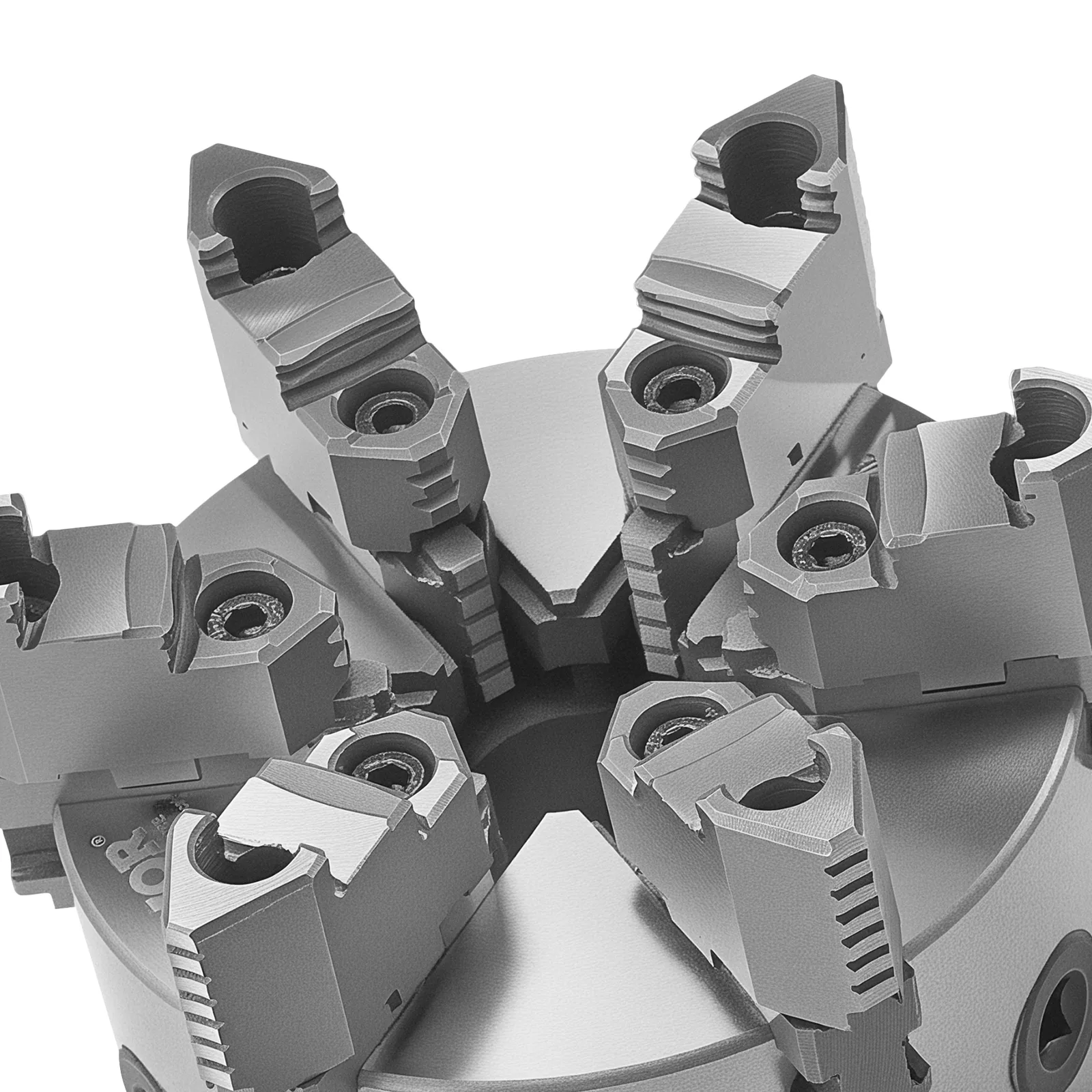 6-palcové 6-čeľusťové sústružnícke skľučovadlo so zadnou doskou