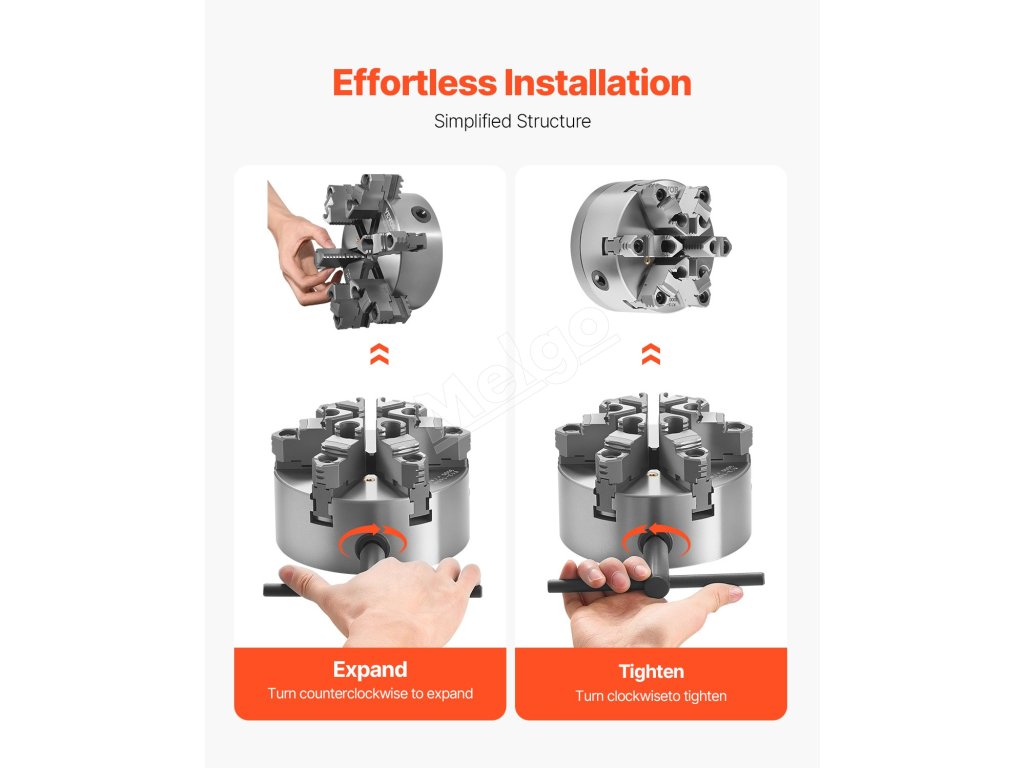 Vďaka funkcii samocentrovania a jemným prevodom zabezpečuje naše sústružnícke skľučovadlo presnú kontrolu nad presnosťou upnutia, takže je ideálne na úlohy presného obrábania.