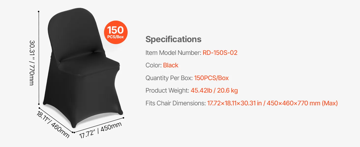 Elastické poťahy stoličiek 150ks čierne spandex 17.72×18.11×30.31 inch