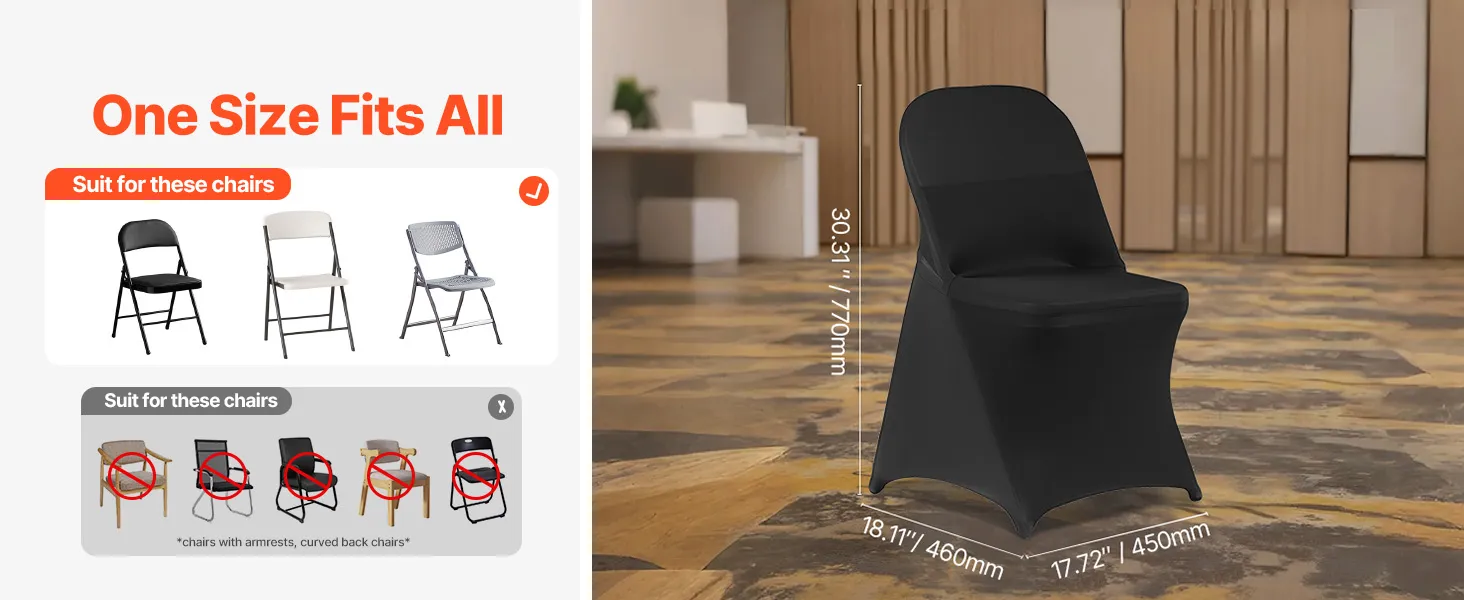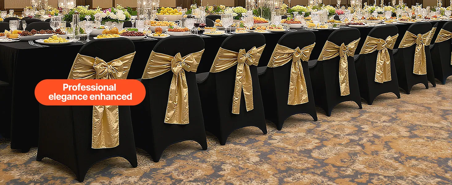 Táto elegantná súprava poťahov na banketové stoličky, vyrobená z vysokokvalitnej elastickej spandexovej tkaniny, zvýrazní jednotný vzhľad vašich stoličiek. Je ideálny na svadby, promócie, narodeniny a iné špeciálne príležitosti a dodá každej udalosti nádych sofistikovanosti a štýlu.