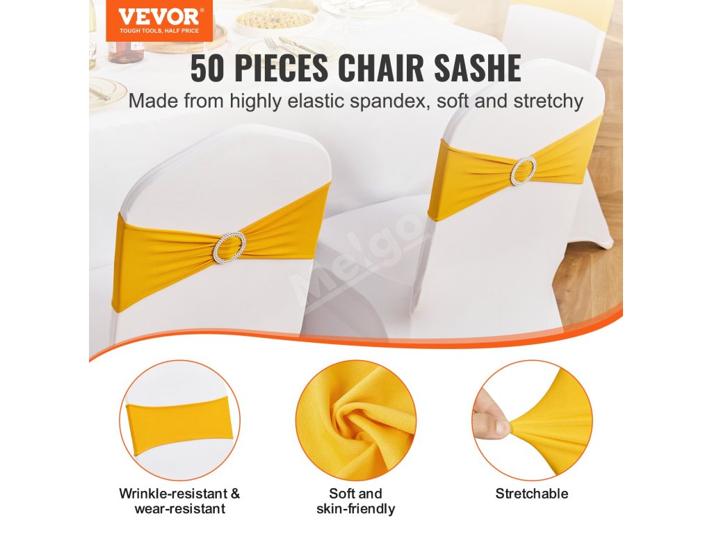 Elastické spandex pásky na stoličky s okrúhlou sponou, 50 ks zlatá