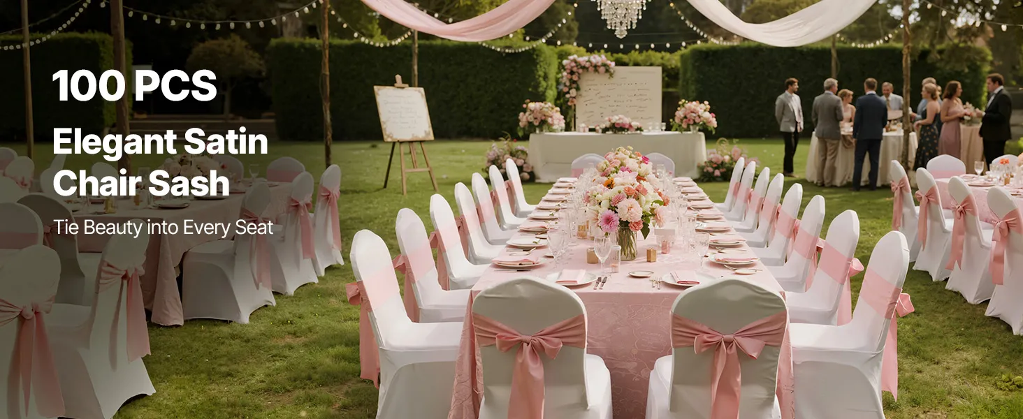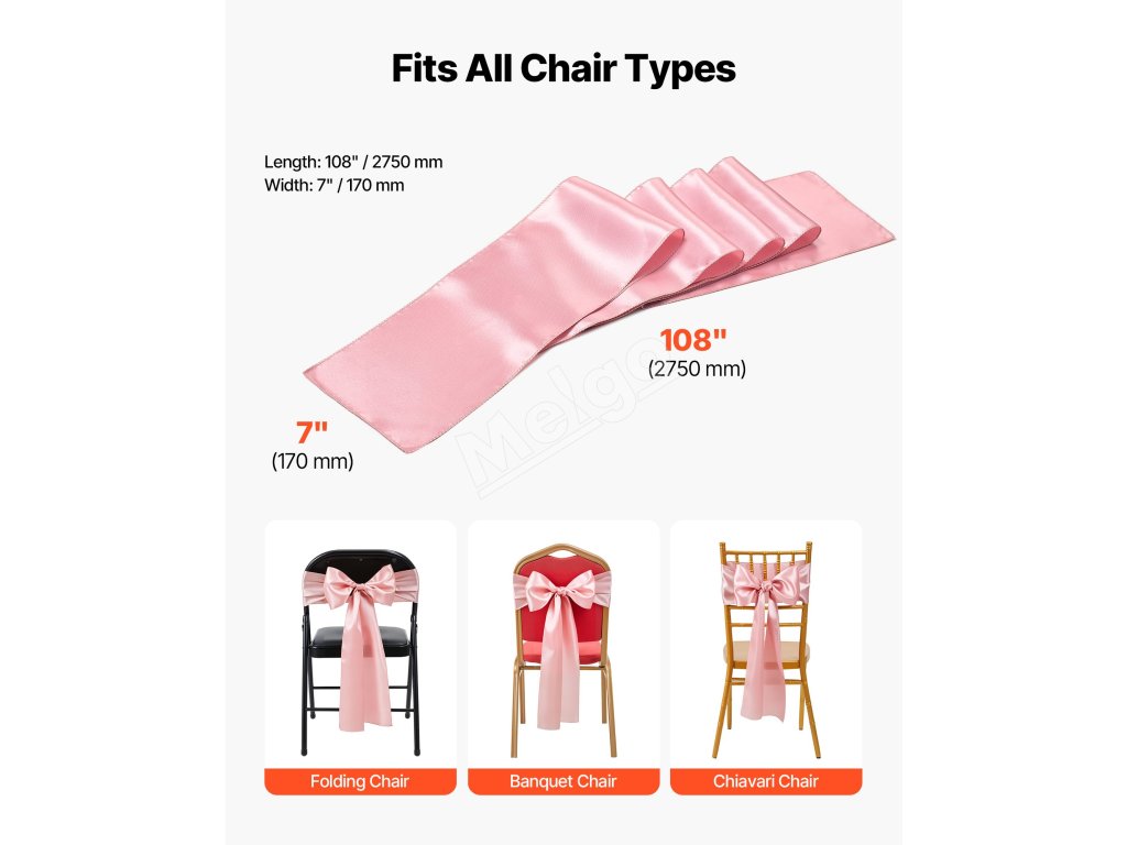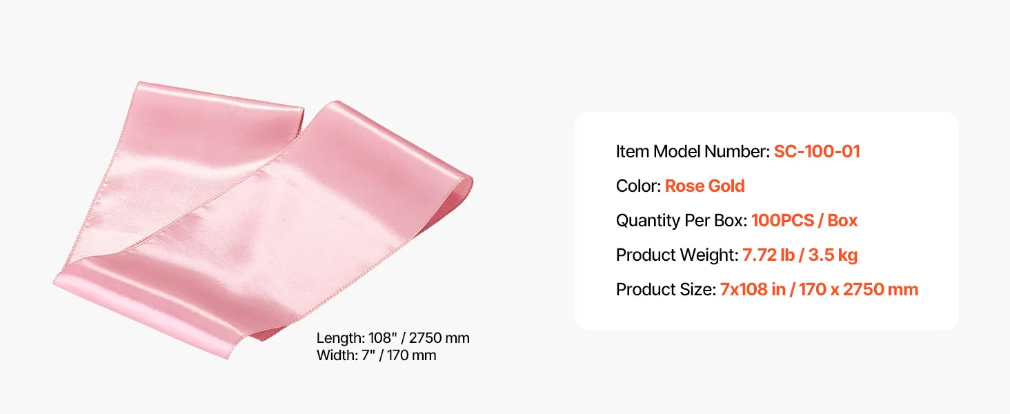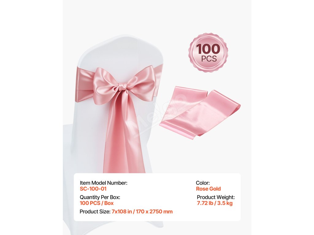 Mašle na stoličky 100 ks, 7×108 inch, ružovo-zlatá, na svadby