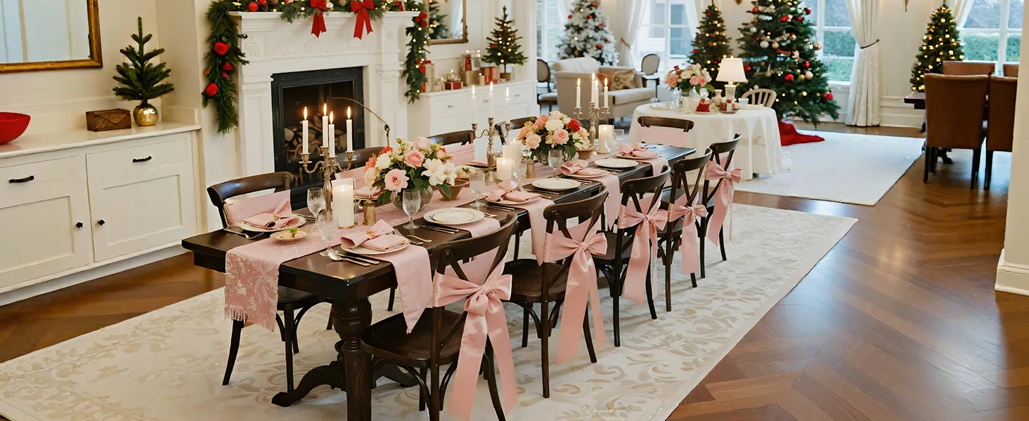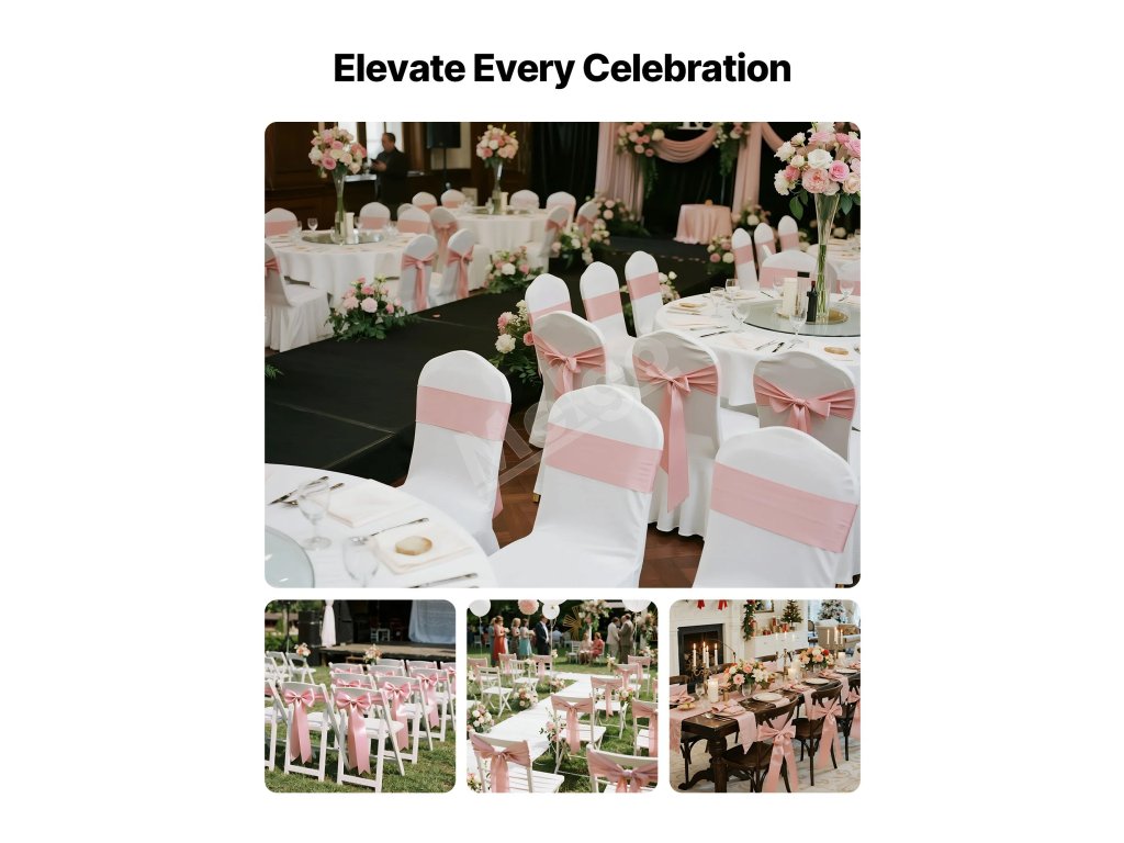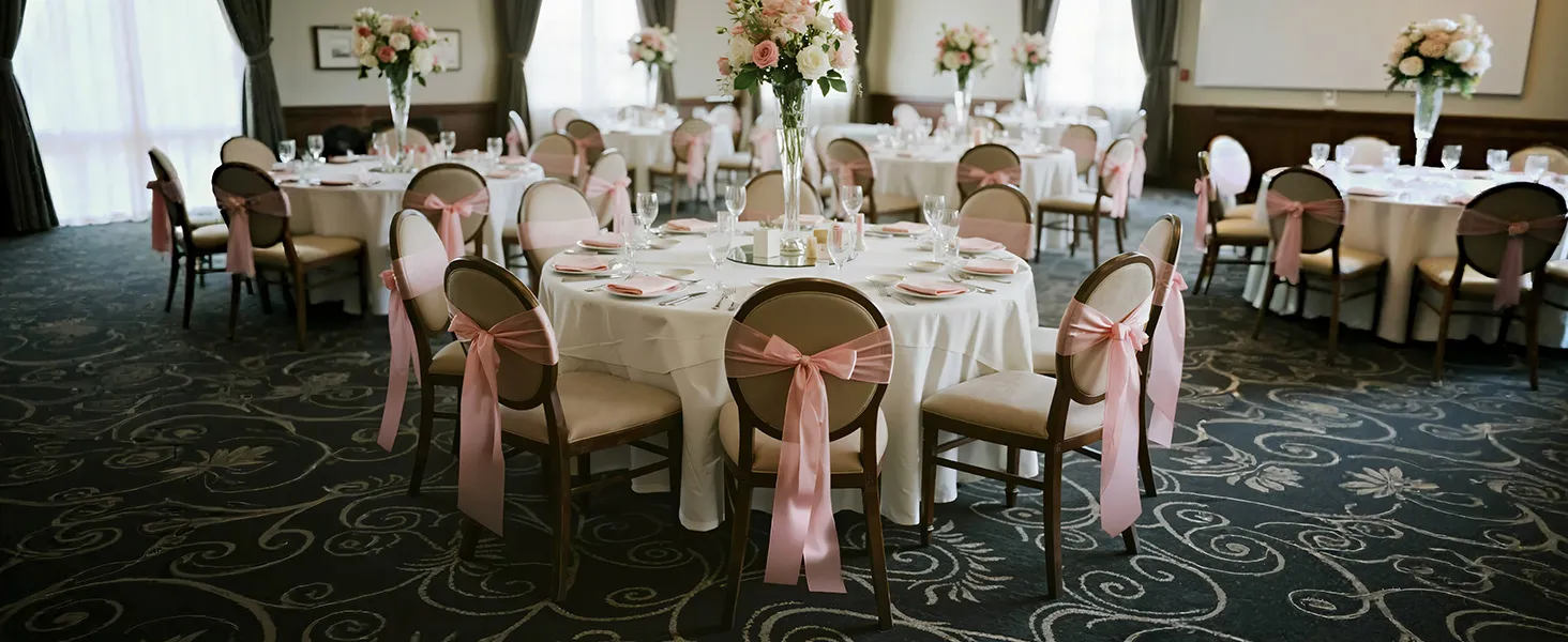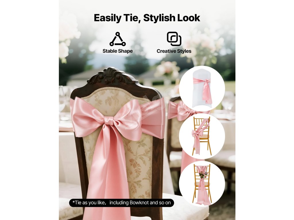 Mašle na stoličky 100 ks, 7×108 inch, ružovo-zlatá, na svadby