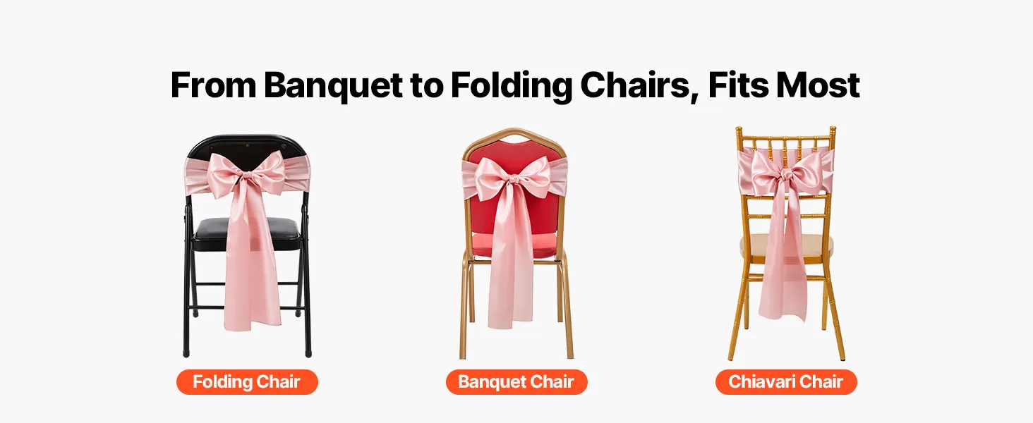 A2: Šerpy majú rozmery približne 275 cm x 17 cm (108" x 6,7") a sú navrhnuté tak, aby sa hodili na širokú škálu stoličiek - vrátane banketových stoličiek, skladacích stoličiek, stoličiek Chiavari a jedálenských stoličiek, pričom sú vhodné pre stoličky väčšiny veľkostí.