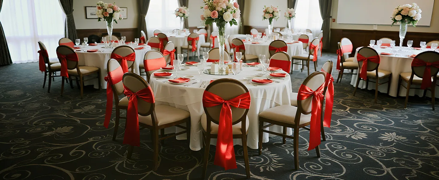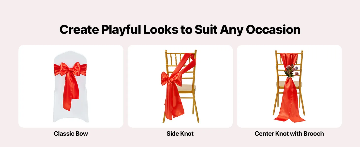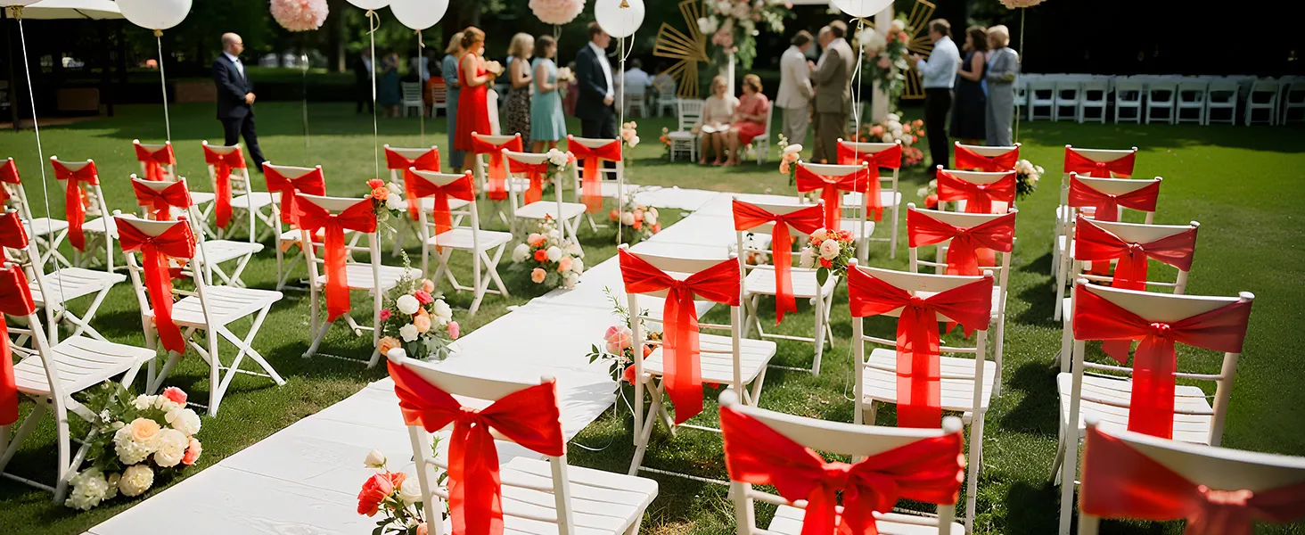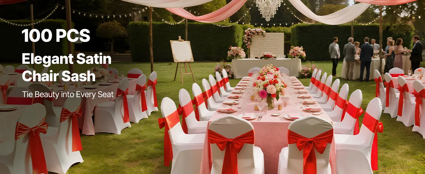 Mašle na stoličky saténové 100 ks červené 7×108 inch na svadbu