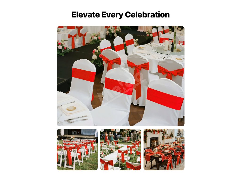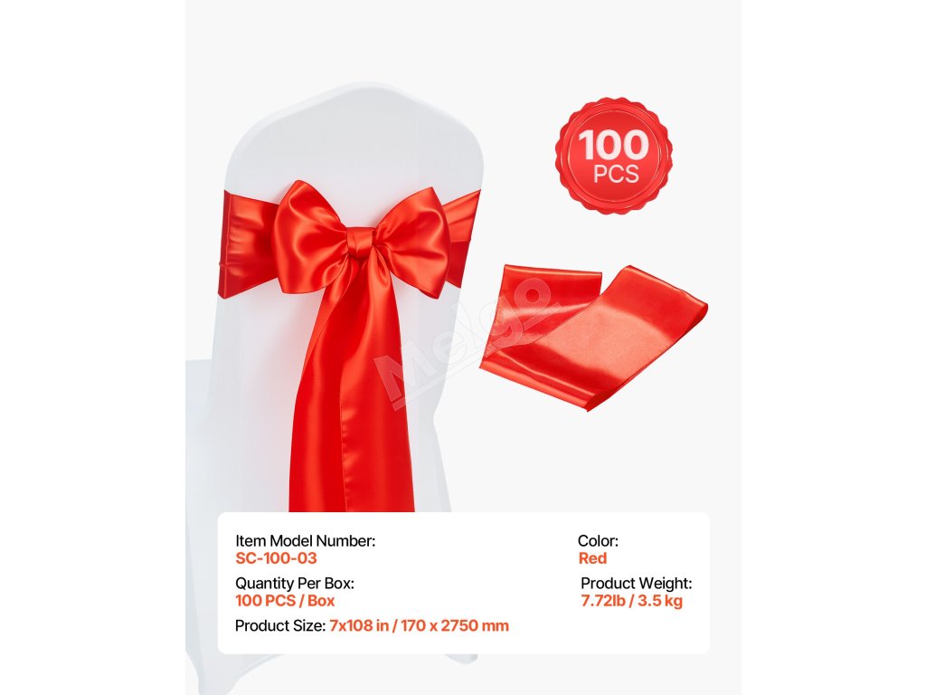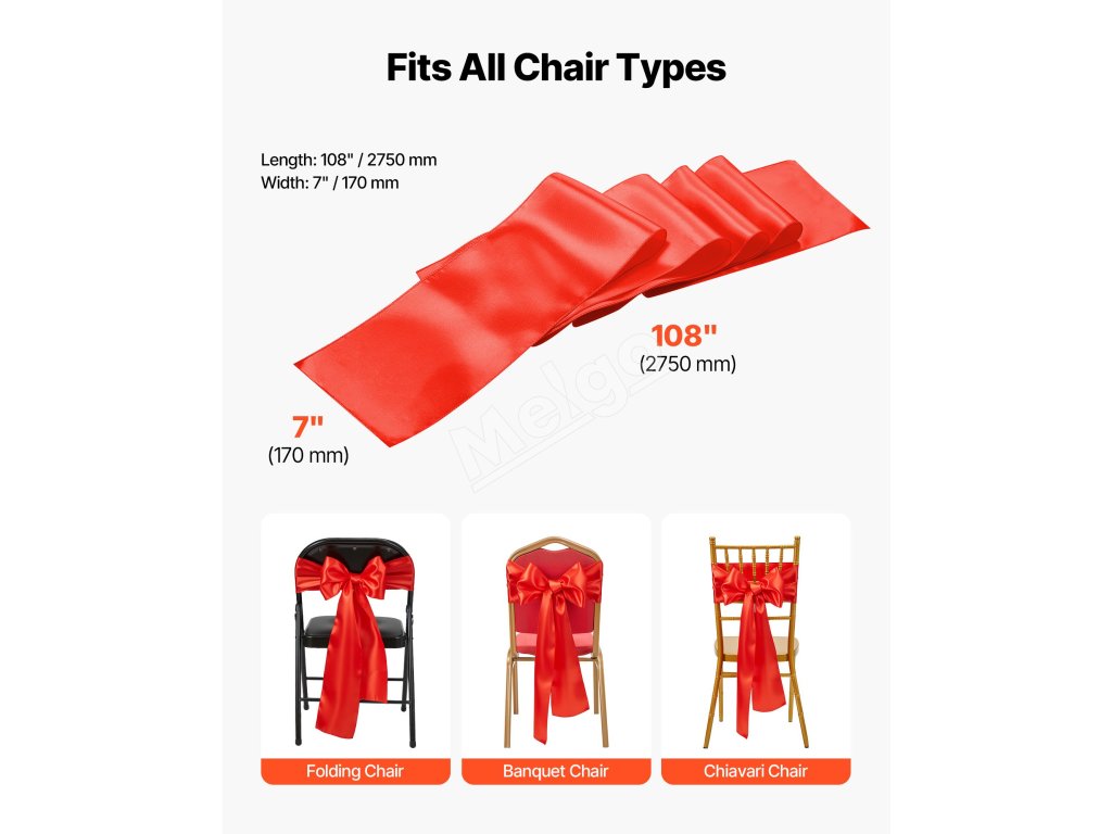 Mašle na stoličky saténové 100 ks červené 7×108 inch na svadbu