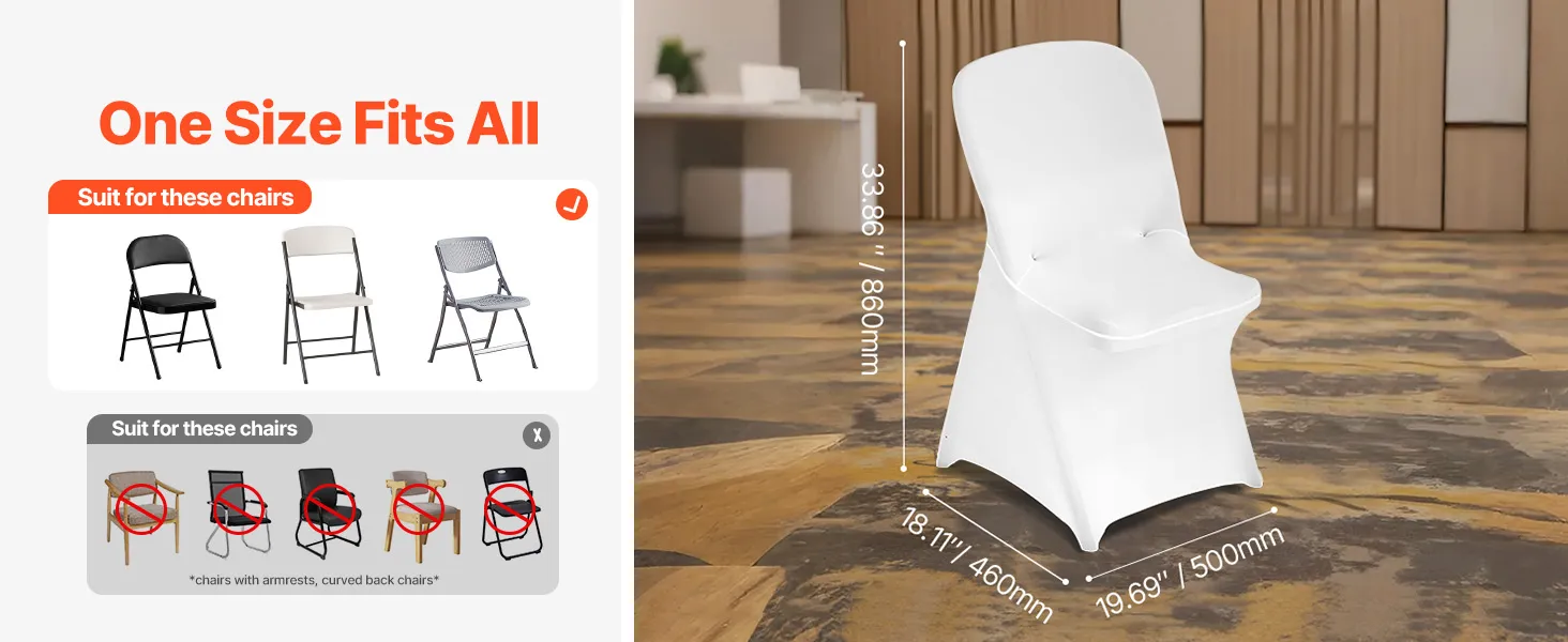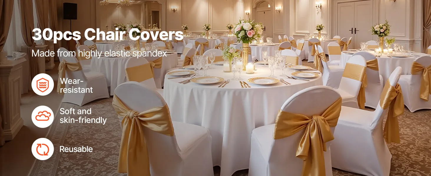Táto elegantná súprava poťahov na banketové stoličky, vyrobená z vysokokvalitnej elastickej spandexovej tkaniny, zvýrazní jednotný vzhľad vašich stoličiek. Je ideálny na svadby, promócie, narodeniny a iné špeciálne príležitosti a dodá každej udalosti nádych sofistikovanosti a štýlu.