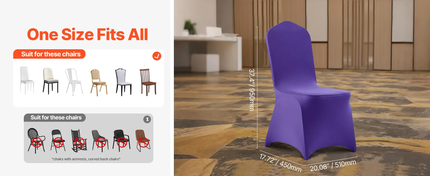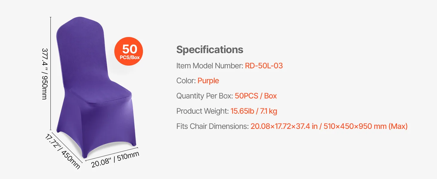 Návleky na stoličky 50 ks fialové spandex do 20.08×17.72×37.4 inch