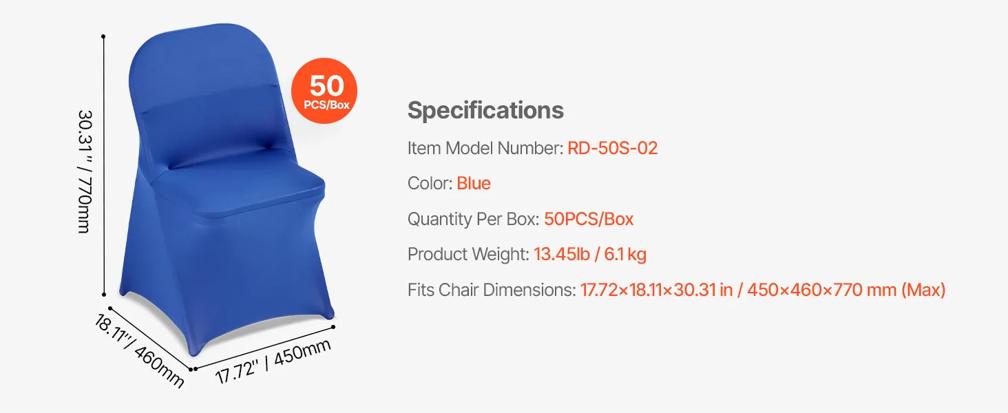 Návleky na stoličky 50ks modré spandex do 17.72×18.11×30.31 inch