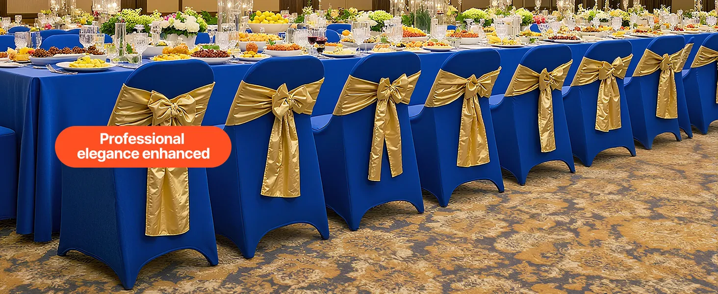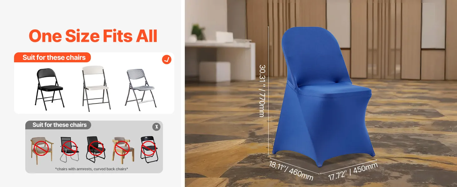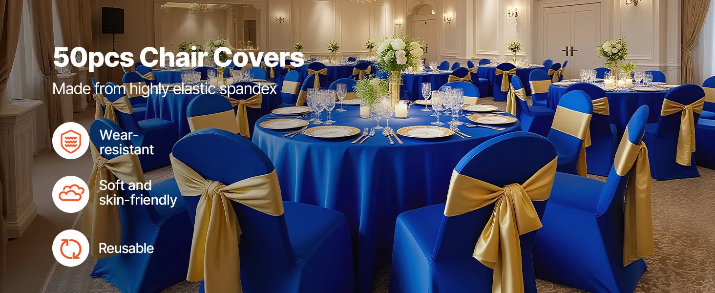 Táto elegantná súprava poťahov na banketové stoličky, vyrobená z vysokokvalitnej elastickej spandexovej tkaniny, zvýrazní jednotný vzhľad vašich stoličiek. Je ideálny na svadby, promócie, narodeniny a iné špeciálne príležitosti a dodá každej udalosti nádych sofistikovanosti a štýlu.