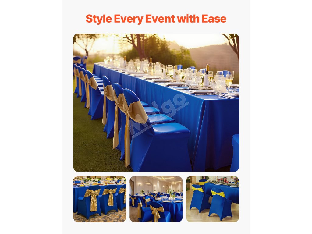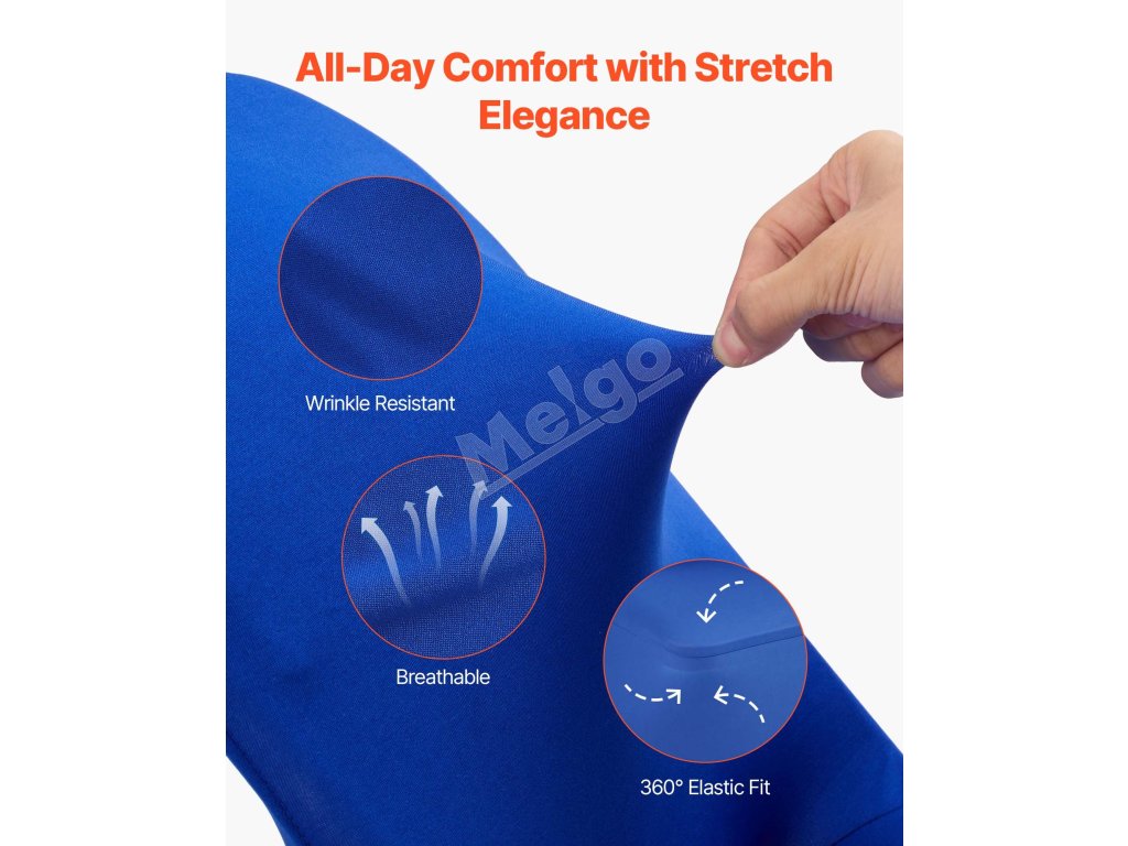 Táto elegantná súprava poťahov na banketové stoličky, vyrobená z vysokokvalitnej elastickej spandexovej tkaniny, zvýrazní jednotný vzhľad vašich stoličiek. Je ideálny na svadby, promócie, narodeniny a iné špeciálne príležitosti a dodá každej udalosti nádych sofistikovanosti a štýlu.