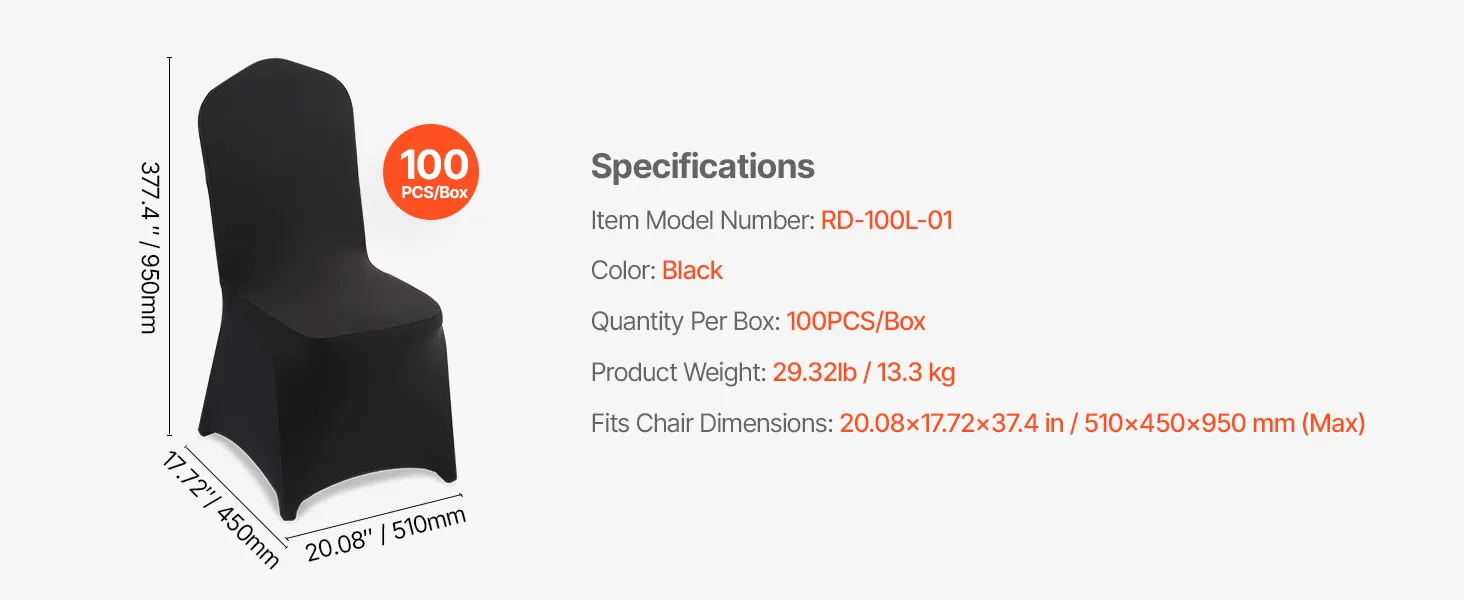Poťahy na stoličky 100 ks čierne streč pre rozm. 20.08×17.72×37.4 inch