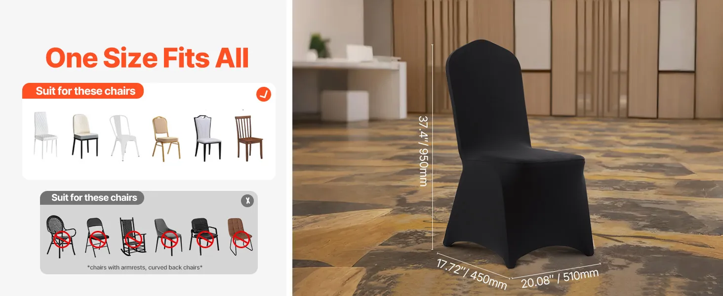 Táto elegantná súprava poťahov na banketové stoličky, vyrobená z vysokokvalitnej elastickej spandexovej tkaniny, zvýrazní jednotný vzhľad vašich stoličiek. Je ideálny na svadby, promócie, narodeniny a iné špeciálne príležitosti a dodá každej udalosti nádych sofistikovanosti a štýlu.
