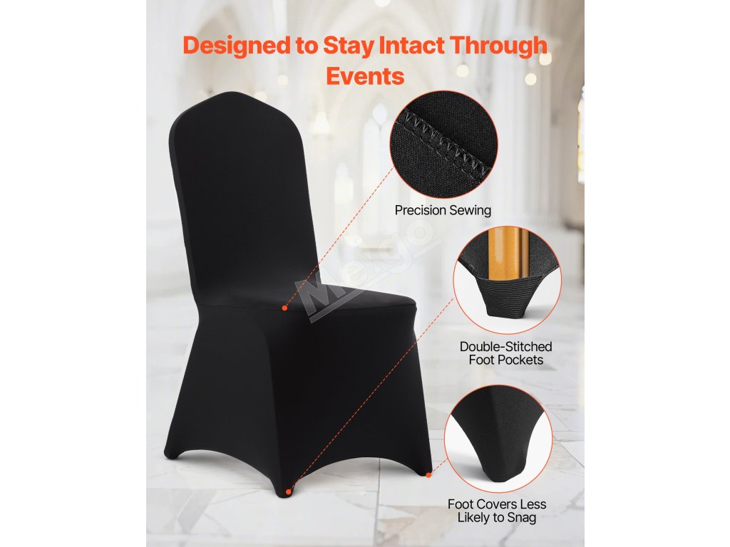 Poťahy na stoličky 100 ks čierne streč pre rozm. 20.08×17.72×37.4 inch