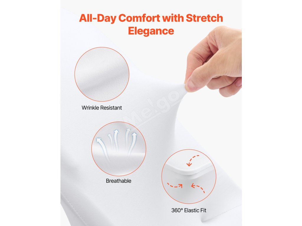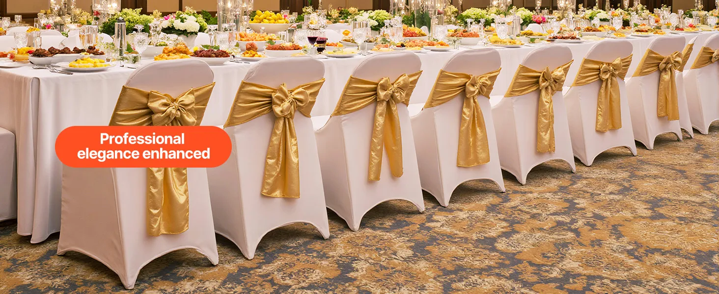 Táto elegantná súprava poťahov na banketové stoličky, vyrobená z vysokokvalitnej elastickej spandexovej tkaniny, zvýrazní jednotný vzhľad vašich stoličiek. Je ideálny na svadby, promócie, narodeniny a iné špeciálne príležitosti a dodá každej udalosti nádych sofistikovanosti a štýlu.