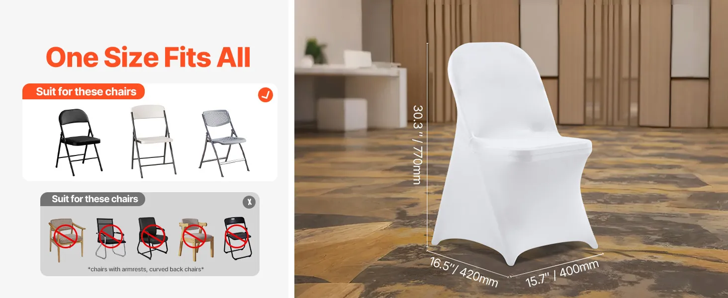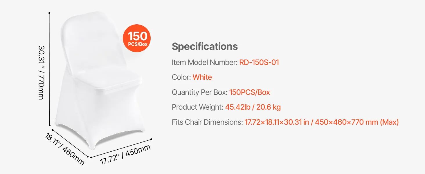 Poťahy na stoličky 150 ks polyester/spandex, do 17.72×18.11×30.31 inch