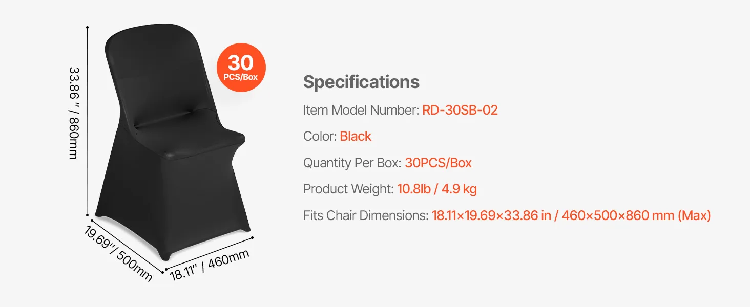 Poťahy na stoličky 30 ks čierne, streč, do 18.11×19.69×33.86 inch