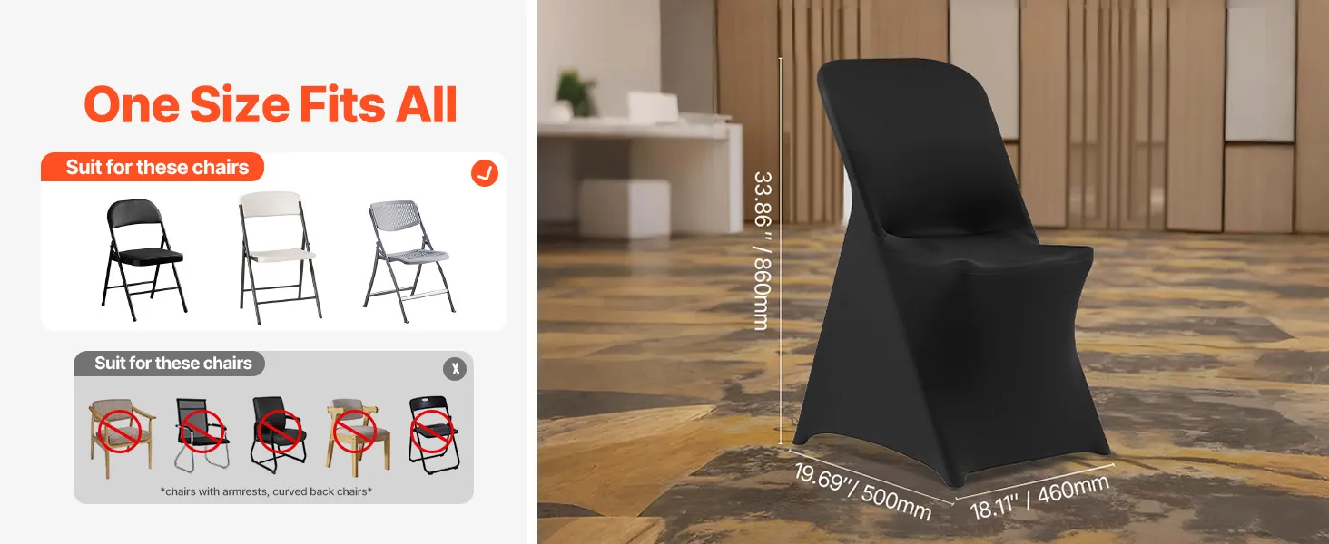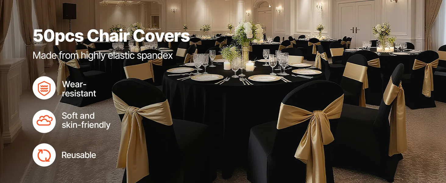 Táto elegantná súprava poťahov na banketové stoličky, vyrobená z vysokokvalitnej elastickej spandexovej tkaniny, zvýrazní jednotný vzhľad vašich stoličiek. Je ideálny na svadby, promócie, narodeniny a iné špeciálne príležitosti a dodá každej udalosti nádych sofistikovanosti a štýlu.