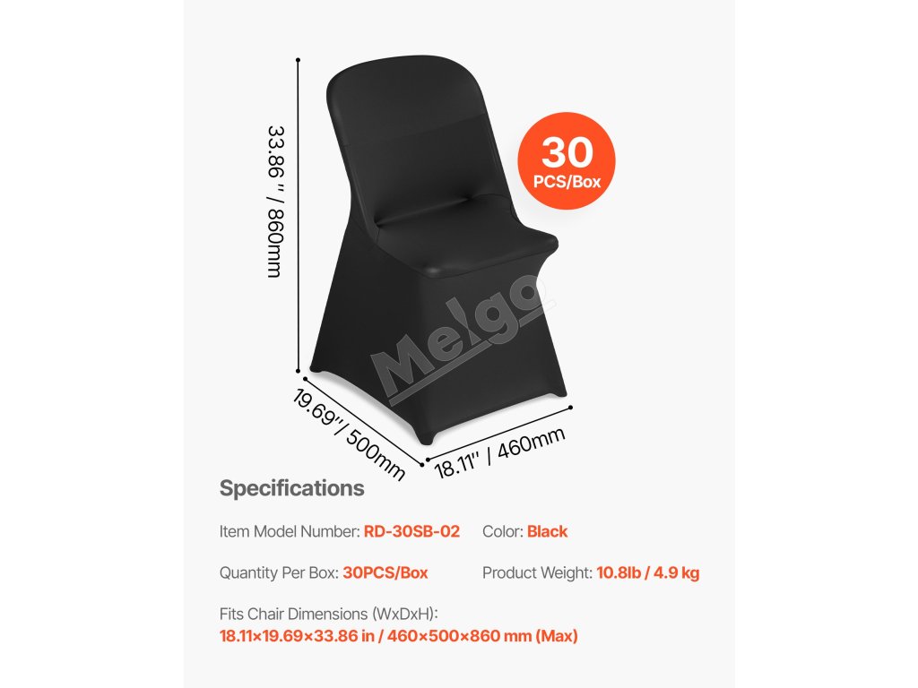 Poťahy na stoličky 30 ks čierne, streč, do 18.11×19.69×33.86 inch